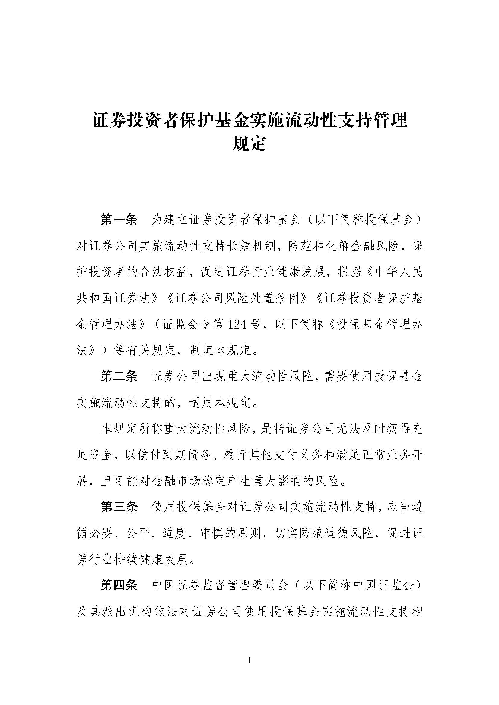 现公布《证券投资者保护基金实施流动性支持管理规定》,自公布之日起施行。